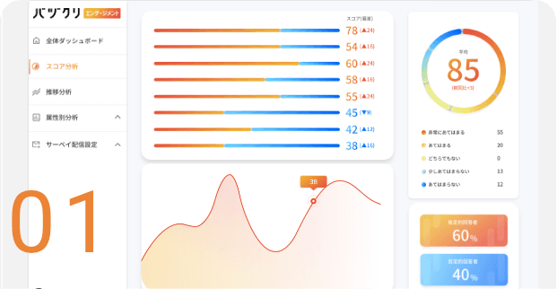 サーベイの結果から、スコア改善に向けた具体的な改善施策を行う必要があります。